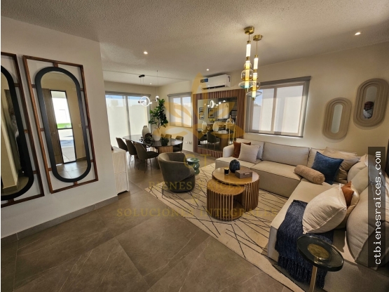 - Planta Baja (Diseño Abierto): Recibe con estilo en una amplia sala y comedor que fluye hacia una cocina integral con isla. Cuenta con medio baño para visitas y una zona semicubierta en el patio trasero, perfecta para tu asador y esparcimiento familiar. Cochera cubierta para dos autos.